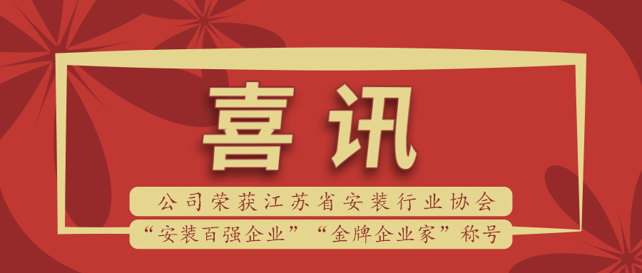 喜訊 | 公司榮獲江蘇省安裝行業“安裝百強企業”及“金牌企業家”稱號